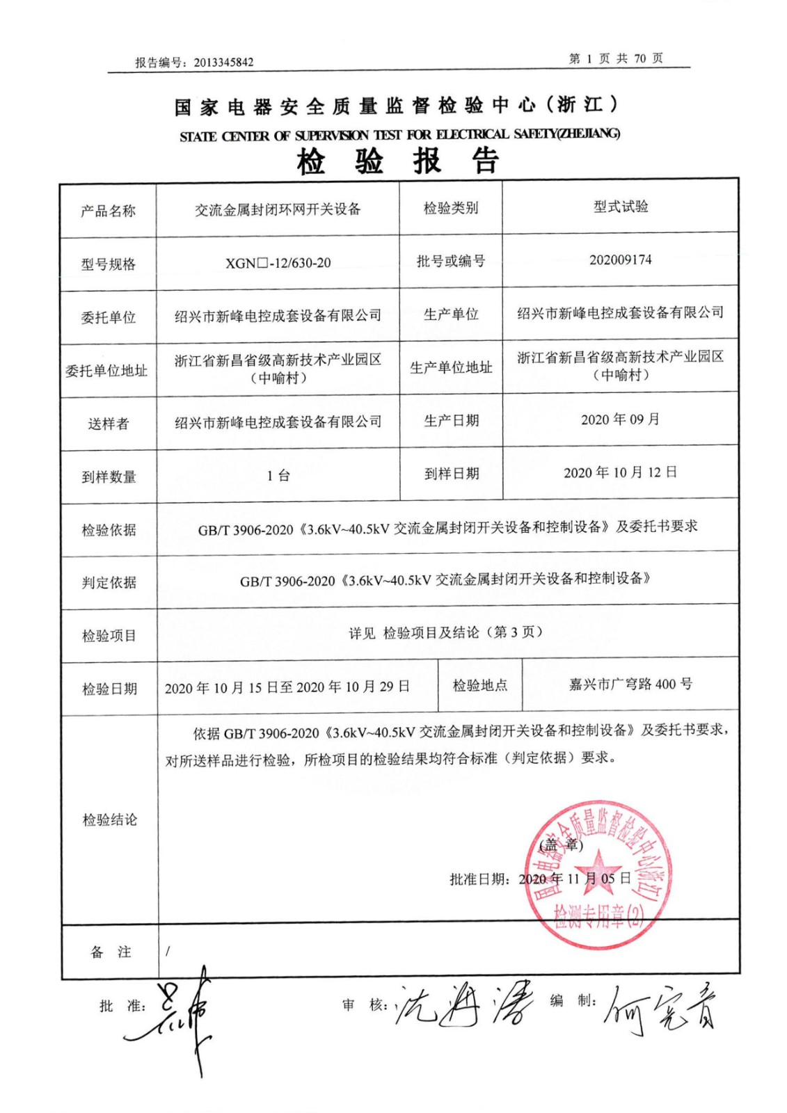 XGN-12-高壓設(shè)備檢測報(bào)告